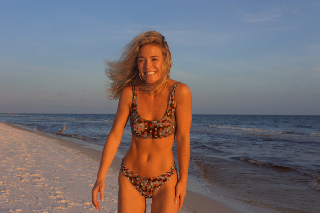 Our Grayton Scoop Bottom is a flattering bikini bottom that you can wear low or high-hipped. It has a "scoop" effect which it is slightly higher in the back and has medium coverage.