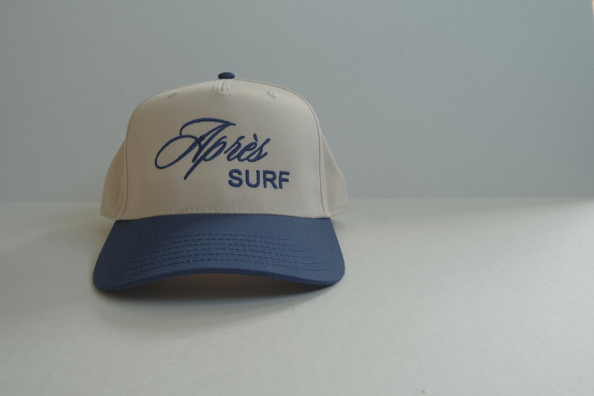 Embrace the laid-back coastal vibe with our Après Surf Trucker Hat. Crafted for beach lovers, it features a classic trucker design in Blue and Cream. Its adjustable snapback ensures a comfortable fit for all. Enjoy the sun-soaked afterglow in style and shade with this essential beach accessory. Get ready to elevate your beachside look with our Après Surf Trucker Hat.